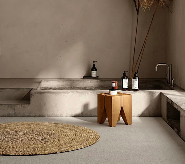 清水混凝土是一種高品質詫寂工業風的產品,以混凝士的 質感為題材,以水泥灰色為主導顏色,漆膜厚實,有混凝土的厚重,又有均勻統一的漆膜。可呈現不同效果的墻體裝飾面材料,采用先進的批刮以及補色工藝,根據傳統意大利制作配方,裝飾效果具有高冷輕奢范。